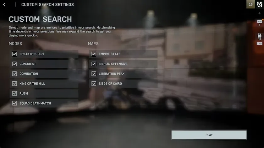 Choć wciąż nie ma pełnej przeglądarki serwerów, twórcy wprowadzili funkcję Custom Search. Pozwala ona ustawić preferowaną mapę jak i również tryb rozgrywki, a system matchmakingu priorytetowo wyszuka właśnie takie połączenie. Dzięki temu można np. od razu trafić na Podbój na mapie Oblężenie Kairu bez konieczności wielokrotnego wychodzenia i dołączania do innych gier.