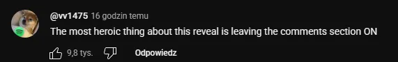Najlepiej nastroje podsumował użytkownik @vv1475 na YouTube. Stwierdził, że najodważniejszym elementem całego ogłoszenia było… pozostawienie otwartej sekcji komentarzy. Wpis zebrał prawie 10 tysięcy polubień i stał się viralem w społeczności. To pokazuje, jak bardzo gracze oczekiwali powiewu świeżości, a zamiast tego dostali produkt „zrobiony według przepisu”.