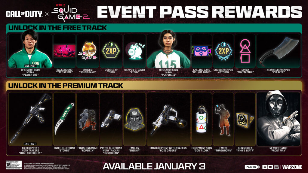 Wprowadzono nowy karnet bojowy z darmowymi i płatnymi nagrodami. Bezpłatnie można zdobyć skórki operatorów. Za 1100 COD Points (około 10 dolarów) można odblokować dodatkowe nagrody, w tym skórkę Front Mana, lidera gier z serialu.