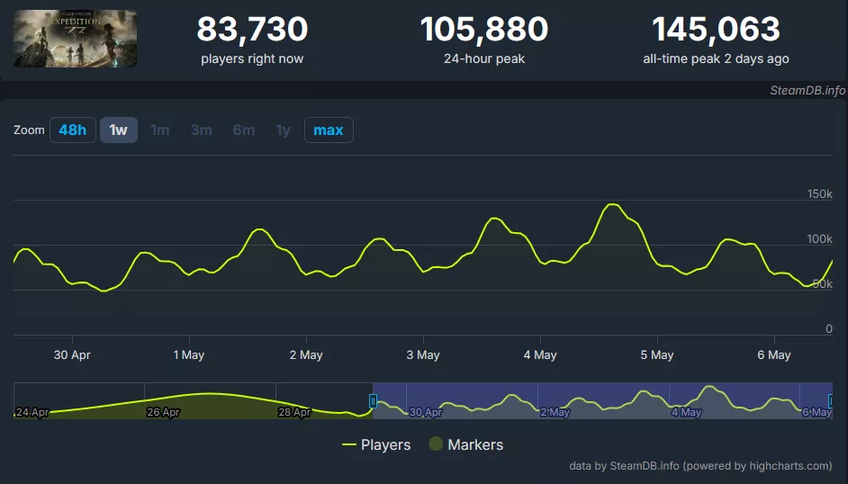W ostatni weekend gra pobiła kolejny rekord – ponad 145 tysięcy graczy jednocześnie bawiło się w Expedition 33 na platformie Steam. To pokazuje, że produkcja nadal przyciąga nowych użytkowników, ciekawych, czy rzeczywiście mamy do czynienia z tytułem wszech czasów.