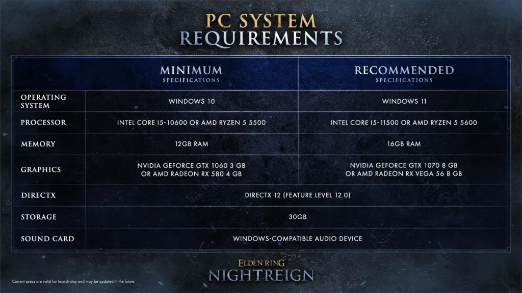 Jak widać, różnice w wymaganiach w porównaniu do oryginalnego Elden Ringa są niewielkie, co jest dobrą wiadomością dla większości graczy.
