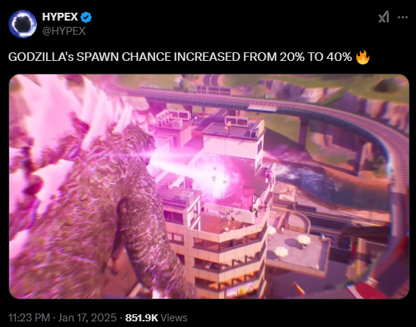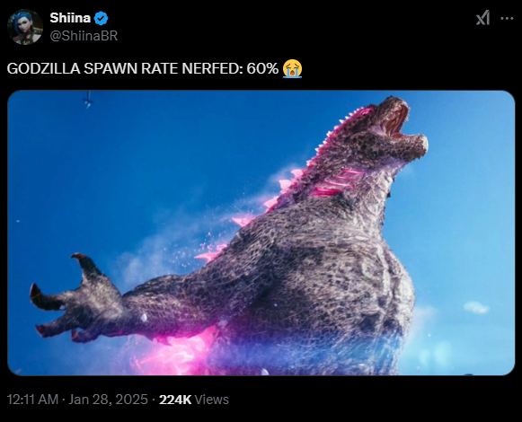 Na początku współpraca Fortnite i Godzilli była ogromnym wydarzeniem. Wiele osób cieszyło się z okazji, by grać jako ten niepowtarzalny stwór, który może zdominować pole bitwy. Jednak z biegiem czasu deweloperzy zaczęli dostrzegać, że częste pojawianie się Godzilli sprawia, że niektóre rozgrywki stają się zbyt łatwe lub zbyt trudne do kontrolowania. Stąd decyzja o nerfie, obecnie współczynnik pojawiania się Godzilli w Battle Royale wynosi 60%.