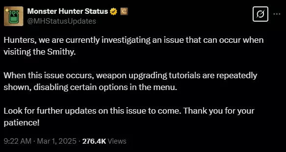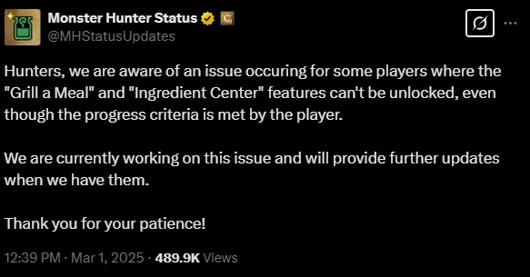 Capcom szybko zareagował na zgłoszenia społeczności i ogłosił na oficjalnym profilu Monster Hunter na platformie X, że wdroży stosowną aktualizację jutro o godzinie 9:00 czasu polskiego. Instalacja patcha będzie obowiązkowa dla osób grających online.