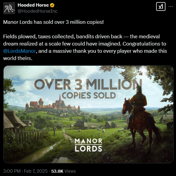 Manor Lords podbija serca graczy: 3 miliony sprzedanych kopii!