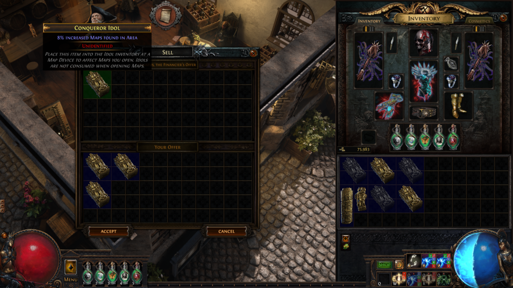 Czasami zdarza się, że gracz zgromadzi nadmiar Idolów, których nie będzie w stanie wykorzystać. W związku z tym twórcy Path of Exile przygotowali kilka sposobów na ich przetworzenie. Pierwszym rozwiązaniem jest sprzedaż nadmiarowych przedmiotów u sprzedawcy. Na przykład, oferując trzy magiczne Idole tej samej podstawy, gracz otrzyma w zamian jeden losowy Idol tej samej podstawy.