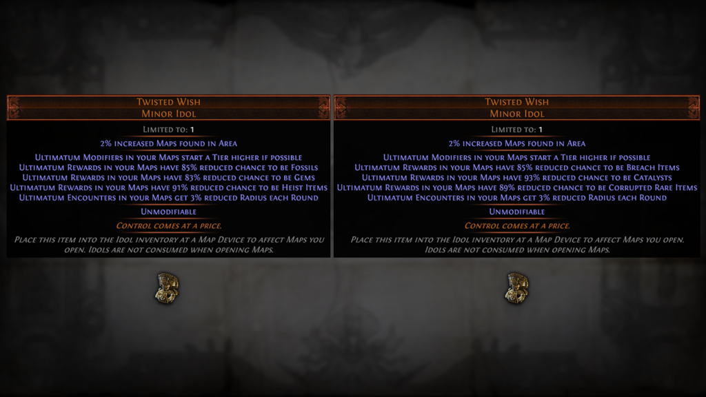 Nowe unikatowe Idole wprowadzają do gry dodatkowe wyzwania. Przykładem jest Twisted Wish Unique Idol, który zmienia modyfikatory mechaniki Ultimatum. Dzięki temu modyfikatory zaczynają z wyższym poziomem, ale zmniejsza się szansa na niektóre nagrody. To oznacza, że gracze będą mogli wybierać modyfikatory, które najbardziej im odpowiadają, kosztem większego ryzyka.