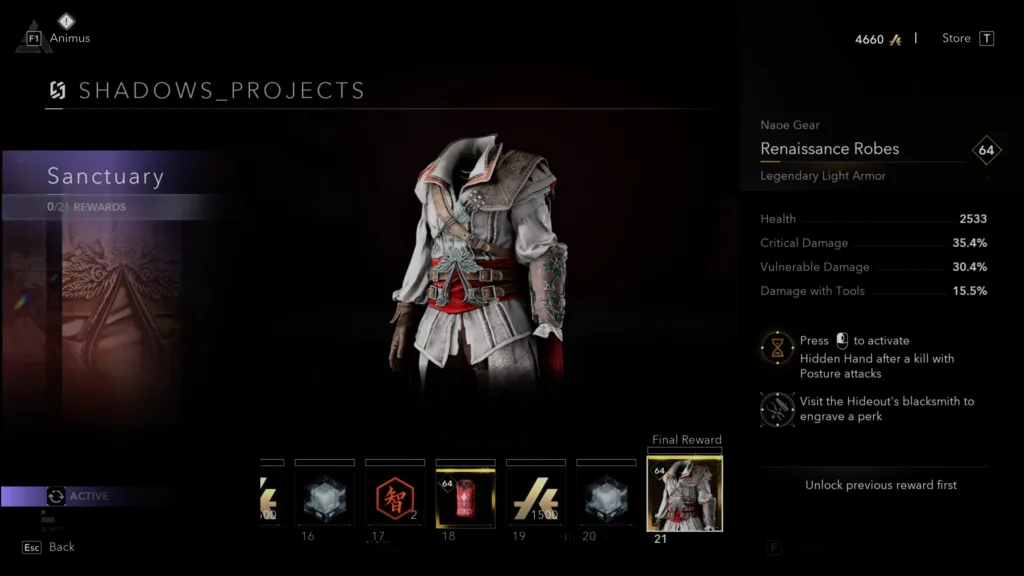 Choć nagroda jest darmowa, sposób jej zdobycia mocno dzieli społeczność. Strój odblokujemy poprzez Animus Hub, gdzie dostępny jest nowy Projekt z kilkudziesięcioma poziomami. Punkty postępu zdobywa się, wykonując rotacyjne wyzwania tygodniowe. Innymi słowy, nie da się „przeskoczyć” systemu, trzeba logować się regularnie i odhaczać kolejne zadania. Gracze obliczyli, że pełny strój Ezio da się odblokować dopiero po około 2-3 tygodniach.