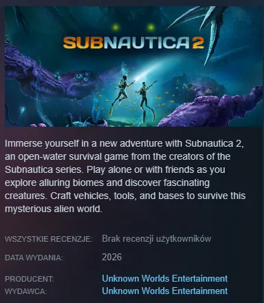 Z drugiej strony, przedstawiciel Kraftona w rozmowie z PC Gamer podkreślił, że firma koncentruje się na wsparciu premiery Subnautica 2 w ramach wczesnego dostępu. To sugeruje, że ich rola wciąż istnieje, nawet jeśli nie jest już eksponowana w sklepach.