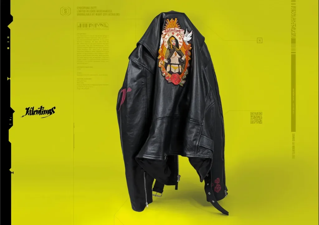 Zawartość zestawu robi wrażenie nawet na tle klasycznych kolekcjonerek. W środku znalazły się między innymi stylizowane dokumenty z uniwersum Night City, kieliszek do tequili oraz element, który skradł całe show, prawdziwa skórzana kurtka inspirowana gangiem Valentinos.