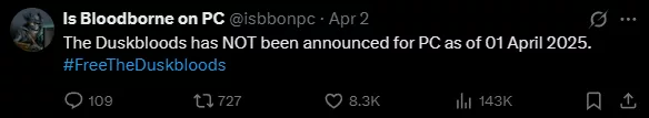 Na platformie X (dawny Twitter) szybko pojawiły się ironiczne komentarze. Popularne konto „Is Bloodborne on PC” opublikowało post: „Zaczynamy odliczanie do premiery The Duskbloods na PC. Żartuję – znając Nintendo, nigdy to się nie wydarzy.”