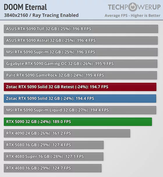 Redaktorzy TechPowerUp przeprowadzili testy porównawcze, które potwierdziły, że karty z niższą liczbą ROP działają wolniej o około 4%. Co ciekawe, w grze Doom Eternal zauważono minimalny wzrost wydajności.