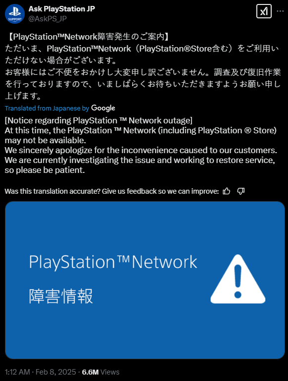 Japoński oddział wsparcia technicznego PlayStation potwierdził na platformie X (dawniej Twitter), że firma jest świadoma awarii. Sony intensywnie pracuje nad jej rozwiązaniem. Nie podano jeszcze przewidywanego czasu przywrócenia pełnej funkcjonalności sieci, ale Sony zapewnia, że podejmuje wszelkie możliwe kroki, aby jak najszybciej uporać się z problemem.