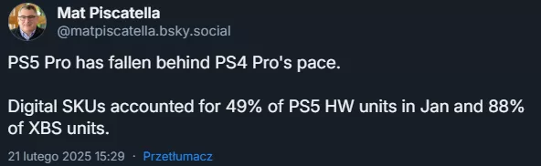 Interesującym trendem jest rosnąca popularność wersji cyfrowych konsol. Szacuje się, że aż 49% sprzedanych egzemplarzy PS5 Pro to modele bez napędu. W przypadku Xbox Series ta liczba jest jeszcze wyższa i sięga aż 88%. Według analityków nie wynika to jednak z problemów z dostępnością wersji z napędem, lecz z decyzji Microsoftu o zwiększeniu produkcji modelu Xbox Series X w białej wersji, pozbawionej czytnika płyt.